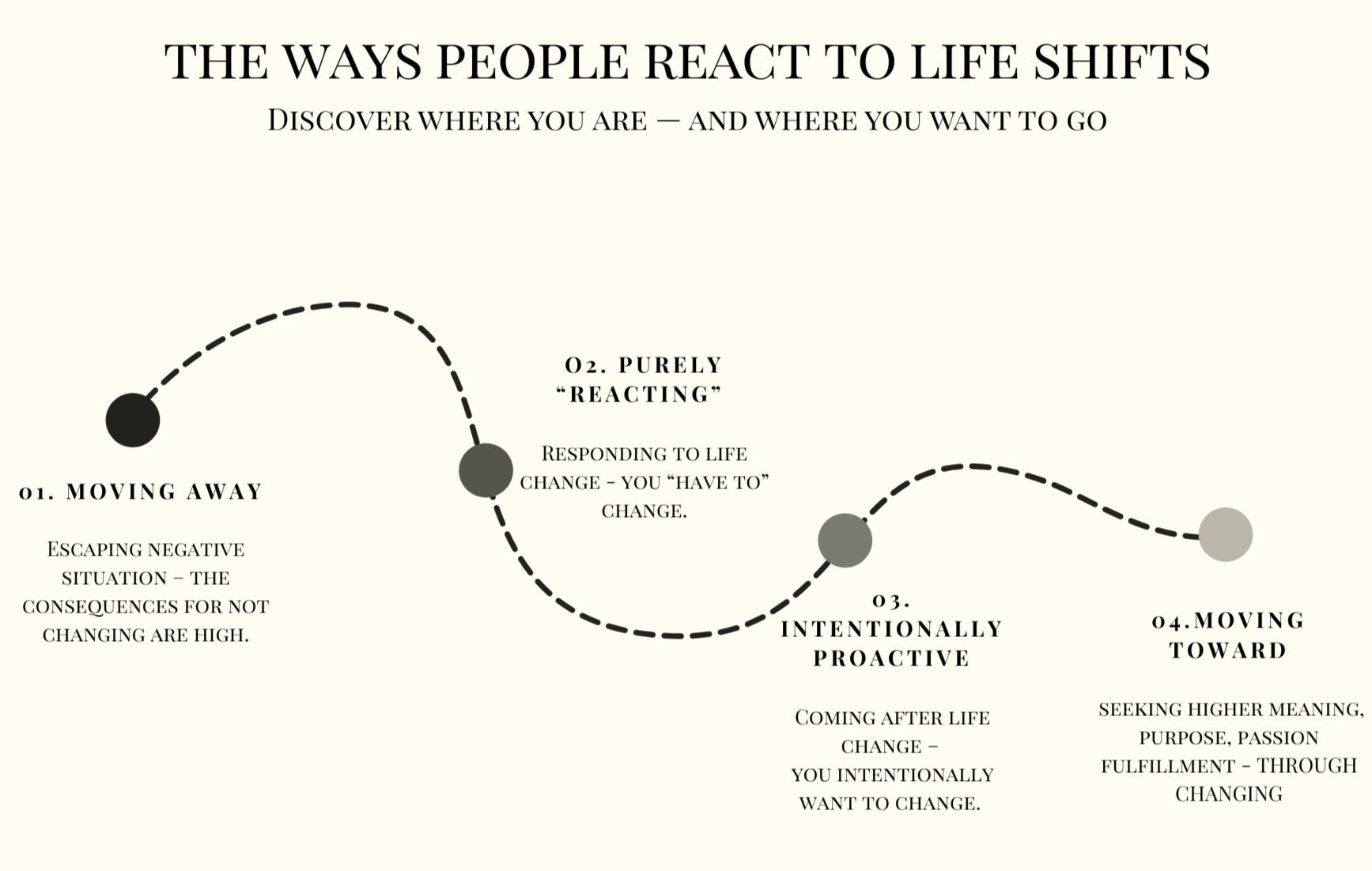 My approach is specifically designed for those willing to changeβfor the ones seeking meaning and real transformation exactly during the life shifts (in the image numbers 3 and 4).