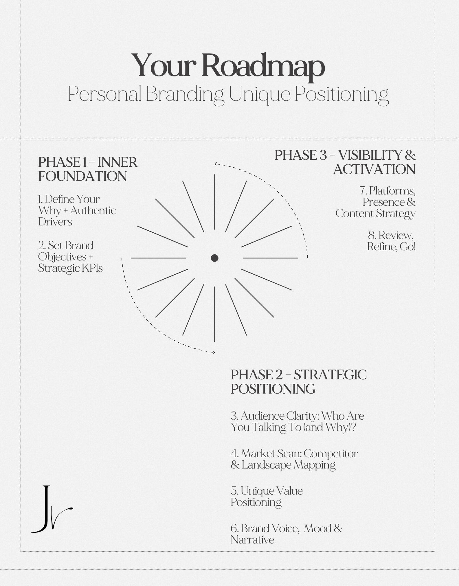 A 1:1 personalized program to define, design, and activate your unique brand positioning -with intention and inner alignment.Your unique story, values, goals, and market position will be at the center to create one unique brand position that’s both magnetic and meaningful to you and others.